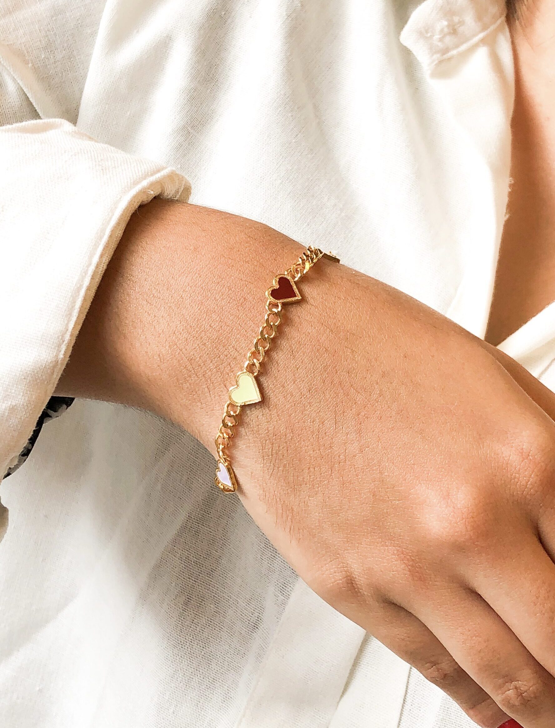 Pulsera en cadena con mini dijes de Corazones Resinados